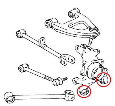 These are the common bushes in the rear knuckle that connects to the rear Lower Control Arm and Trailing Arm (not available as a OEM bush from Toyota, gotta buy a whole knuckle!)