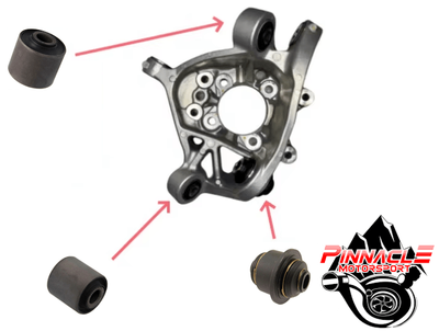 This bush kit will include all 6 bushes for the rear knuckle (3 bushes per side)