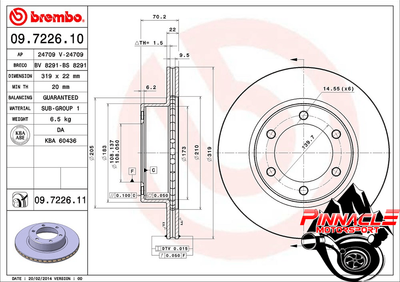 Brembo Prime Front Brake Rotors / 319mm OD / Toyota Hilux Surf KZN185 / Prado KZJ95 et