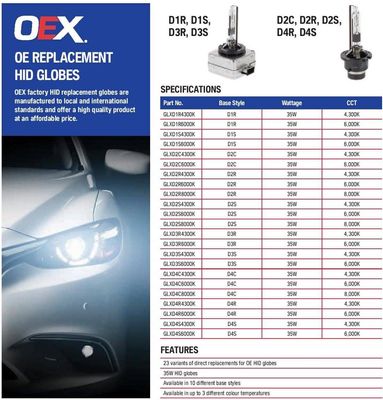 OEX Factory H.I.D Replacement globes are manufactured to Local & International Standards and offer a High Quality Product at an Affordable Price